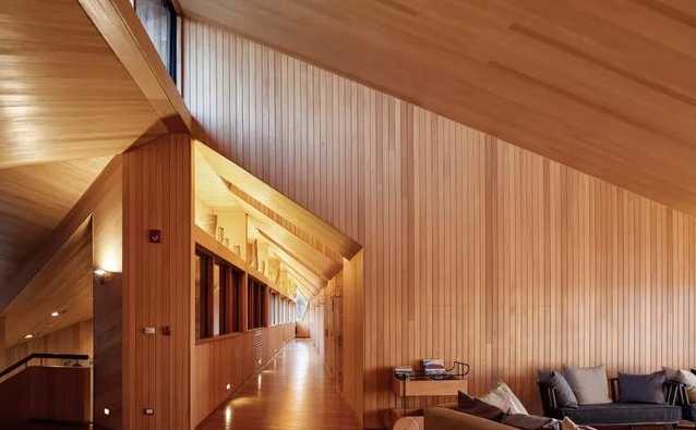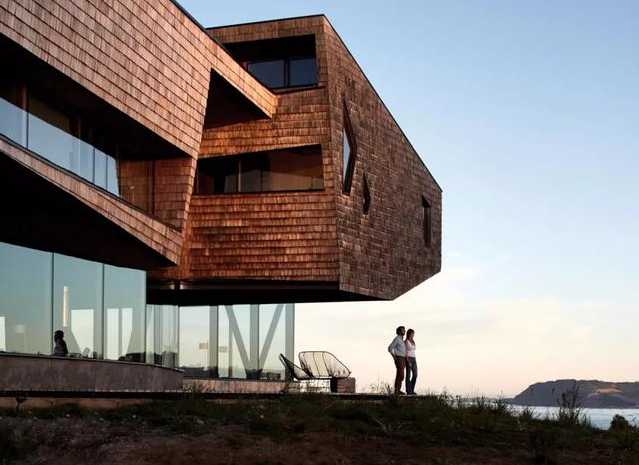 酒店位于智利Chiloe群島的一個青草山上,建筑的設計靈感來源于當地附近歷史悠久的木制教堂,因此整體主要用木材來建造。同時為了能讓客人們看到周圍的美景酒店在休息區、客房和地下的spa區等都設有落地窗。