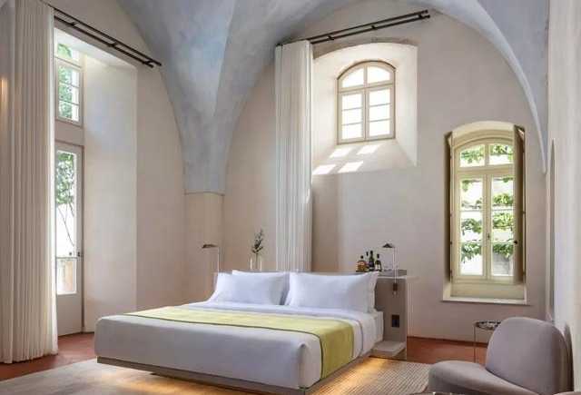 這家酒店是由修道院和醫院改造而來,設計師John Pawson在翻新的同時保留了原始建筑中極具特色的傳統元素,并融入了阿拉伯和新羅馬式的建筑風格。整體軟裝融合了多種色彩,家具的使用也與建筑內的色調相匹配,明暗之間無縫過渡,各個細節的點綴也很恰到好處。