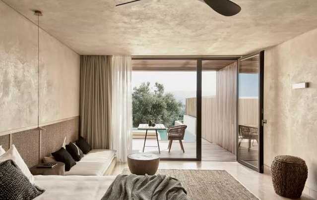酒店的軟裝設計中,結合了藤條、竹子和木材等元素,體現出了桑特島上的希脂風情。