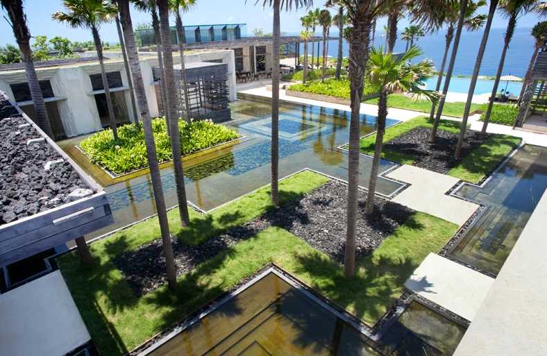海濱度假勝地:海濱度假酒店比較受其功能和地域的限制。濱海假日酒店充分利用了陽光、海灘、海水等自然資源,深受廣大游客的青睞。顧客從海濱度假酒店前往海灘通常有一段距離。與海灘景觀設計不同,海濱酒店設計更注重隱私和舒適性。必須充分利用周圍起伏的地形,以減少室內(nèi)通過的視覺沖擊力和視野。這要求酒店景觀設計應充分考慮景觀的滲透性和游客活動的隱私性,酒店中的會議場所需要創(chuàng)造一個私人和安靜的環(huán)境。同時,植物的多樣性可以創(chuàng)造出豐富的景觀水平,利用照明效果也可以創(chuàng)造一個美麗的夜景環(huán)境。利用沿海植物營造海濱度假的氛圍,充分考慮植物的多樣性;利用高大的植物創(chuàng)造適當?shù)恼谑a效果。