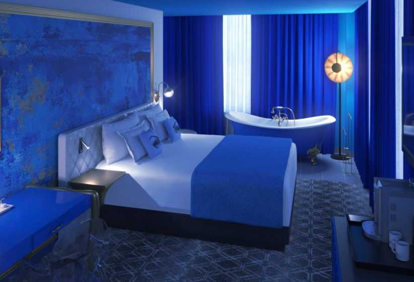 根據(jù)酒店本身的功能與主題性設(shè)計,客房室內(nèi)色彩設(shè)計還會有更多的變化。一個整體的酒店客房空間當中需要分隔出不同的功能區(qū),使住戶明確客房的每一部分有著怎樣的具體功能。因此,顏色的不同應(yīng)用可以使得不同功能的空間被很好地分隔開來。在洗漱區(qū)域,設(shè)計者可以采用暗色調(diào)的色彩,使整體空間構(gòu)造出私密性的心理感受。而在房間內(nèi)的休閑區(qū)則可以采用較為明亮的色彩,使得住戶能夠在這一區(qū)域有更多放松的心理感受。在主臥區(qū)域則應(yīng)當選用較為舒緩沉靜的色彩,使用戶在這一區(qū)域內(nèi)能夠很好地放松身心,得到良好的休息。