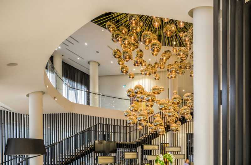 發布人:水木源創設計 發布時間:2020.06.06在精品酒店設計中,任何酒店室內都離不開燈光設計,無論是從市場需求和顧客需求來看,精品酒店燈光設計都是必不可少的。現代酒店的燈光設計,應當更多地從環保的角度進行考慮,而市場需求上的環保,可以解釋為器材上的環保,就是如何平衡造成污染的各個因素;而顧客需求上的環保,則是燈光照度、明暗的環保,避免光線直射造成的光污染和炫目。