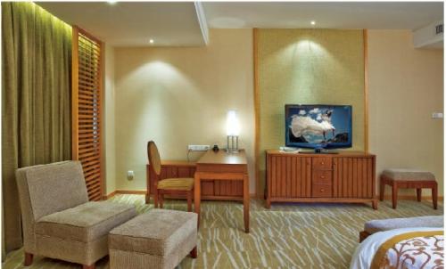 2、照明:增加整個客房內的照度,除常規(guī)的臺燈、落地燈、床頭燈、廊燈、夜燈、吧臺燈外,另外再增加吸頂燈,分組控制,客人可隨其喜好和要求進行控制;吧臺處使用射燈,房間內除床頭上方,其他位置的墻面掛畫上方頂棚均要考慮設置一可旋轉45度角的射燈,直射掛畫;床頭上方頂棚堅決杜絕使用射燈:第一,不安全,射燈爆炸時易傷害客人;第二,無多大實際用處,設想,你住店時會半躺在床上開著頭上的射燈看書?僅僅是外觀效果好點而已,一些設計師往往只重視視覺效果而忽視實際使用及影響。若換成普通筒燈,又體現(xiàn)不出所謂的效果了。床頭燈采取固定在墻面或用床頭臺燈形式,搖臂式床頭燈因易損壞而已經被淘汰;客房除衛(wèi)生間的鏡前燈外,都應采用暖光源。