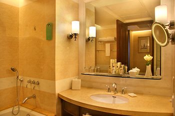 首先要求通風,照明良好,一個常忽略的問題是電話和廁紙架的位置,經(jīng)常被安裝在座便器背墻上,使用不便。另外,煙灰缸與小書架的設計也會顯示出酒店的細心周到。
