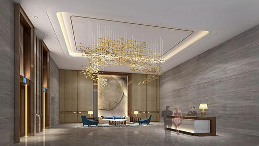 酒店大廳環境占空間較大,是顧客之間交流、會客的主要空間。由于活動行為比較繁雜,所以,酒店設計建議:應根據顧客在酒店大廳的主要行為特點來劃分出主要區域,并依此確定酒店墻面及空間造型。保證穩定、安全的行為空間,根據空間需求確定酒店大廳墻面的裝飾造型和材料。