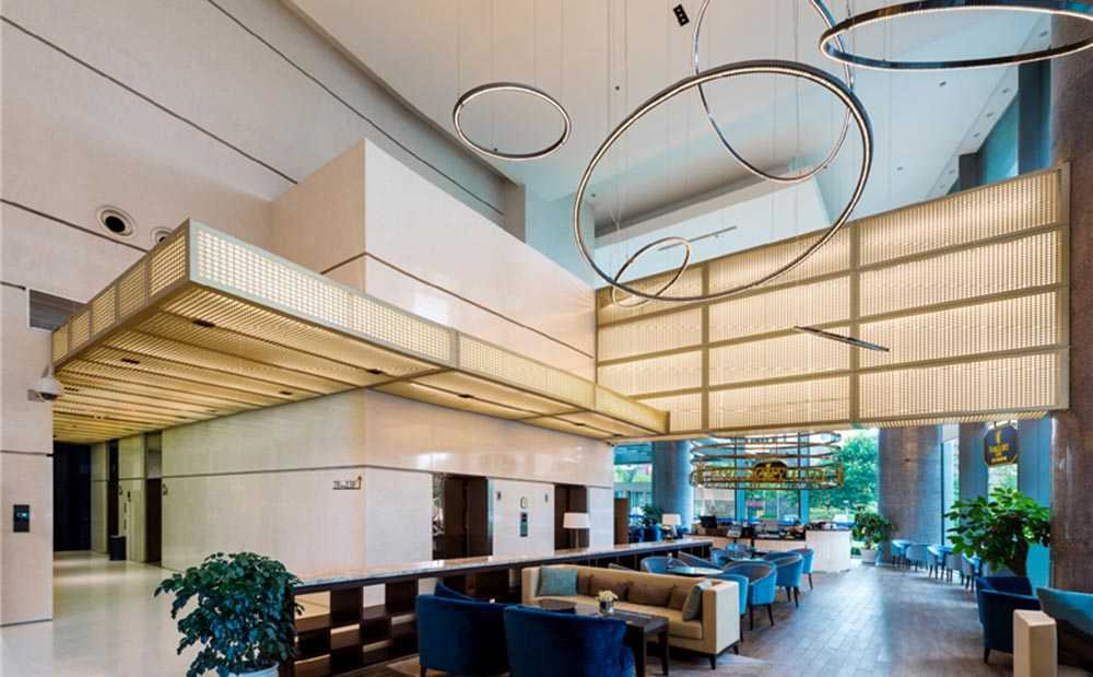 發布人:水木源創 發布時間:2018.03.08酒店內部的視覺效果和外觀設計相一致才會使酒店表里如一,強化酒店的主題。如以古樸典雅為主題特色的酒店,宜用古香古色的木制品,如家具書桌書架等渲染厚重和深沉。如果說設施設備主要在視覺效果上作用于顧客,室內設計則是以空間為載體帶給顧客感官上的效果,營造顧客置身其中的氛圍。酒店室內色彩設計、材質設計、布藝設計、燈具設計、家具設計和陳設設計等均可表達一定的文化內涵,達到其一定的隱喻性、暗示性和敘述性。