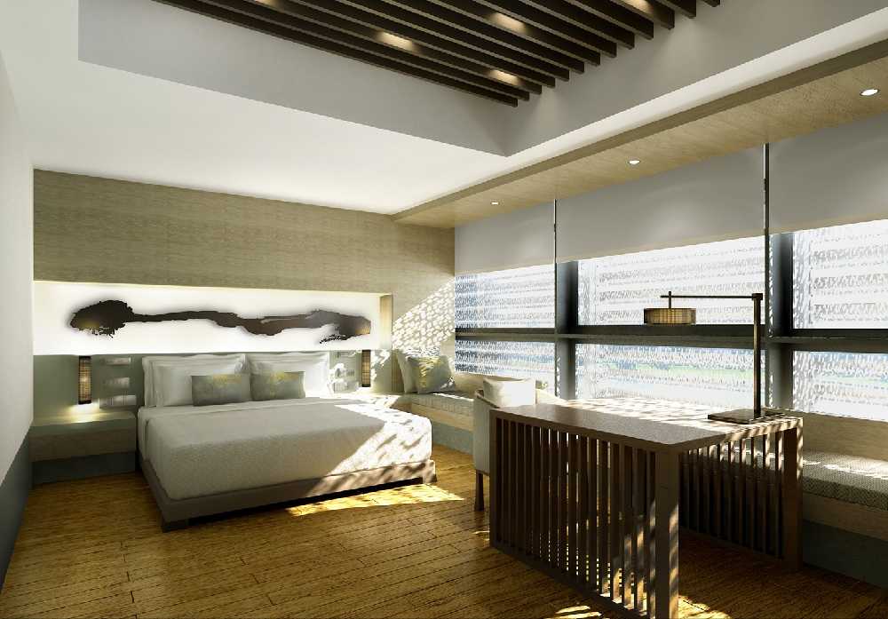 亞麻風格的酒店客房設計效果圖